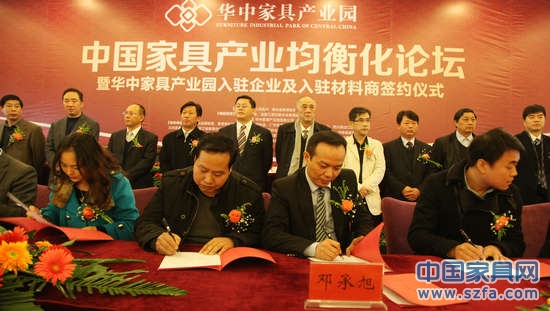 今天,我們喜事連連,不但華中家居建材CBD 喜封金頂,而且迎來了中國家具產(chǎn)業(yè)均衡化論壇暨華中家具產(chǎn)業(yè)園入園企業(yè)及入駐材料商簽約儀式。特別是“珠三角”和成都的45家知名企業(yè)強勢入駐,以佳居樂、元宗、銀通、金茂達、卓意、帝標、美中美等為代表的45家家具企業(yè),家家實力雄厚,在全國乃至全球都享有很高的知名度。這不僅是我們?nèi)A中家具產(chǎn)業(yè)園的一件喜事,也是全市社會各界都十分關(guān)注的一件大事。這將極大地增強華中家具產(chǎn)業(yè)園的輻射力和影響力,對加快推動潛江向中部家具產(chǎn)業(yè)基地邁進具有十分重要的意義。