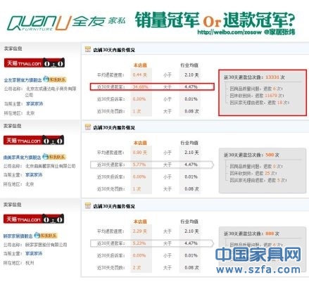 全友家私天貓店退款率高到出奇