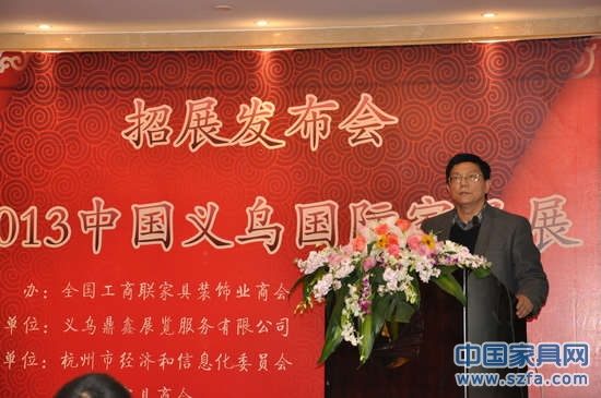 會上,義烏市委常委,義烏市副市長陳勇和全國工商聯(lián)家具裝飾業(yè)商會副秘書長郭力兵介紹了義烏市經(jīng)濟社會以及會場方面的情況。義烏是一座建在市場上的城市,2011年3月義烏已經(jīng)成為了中國第10個經(jīng)濟貿(mào)易特區(qū),有一句大家都知道的口號“小商品的海洋,購物者的天堂”,這已經(jīng)成為過去的口號了,現(xiàn)在義烏也在轉型升級,將升級為一個不只賣小商品的城市。義烏是全球最大的商品集聚地,市場的經(jīng)營面積超過500萬平方米,擁有170萬種國內外商品,被聯(lián)合國譽為世界上最大的商品批發(fā)市場,同時義烏還是一座國際商貿(mào)名城,目前已經(jīng)和219個國家和地區(qū)有貿(mào)易的往來,常駐義烏的疆外客商已經(jīng)超過1.3萬名,2011年在義烏采購的境外客商超過44萬人次,經(jīng)過義烏出口的集裝箱達到57萬個標準集裝箱。