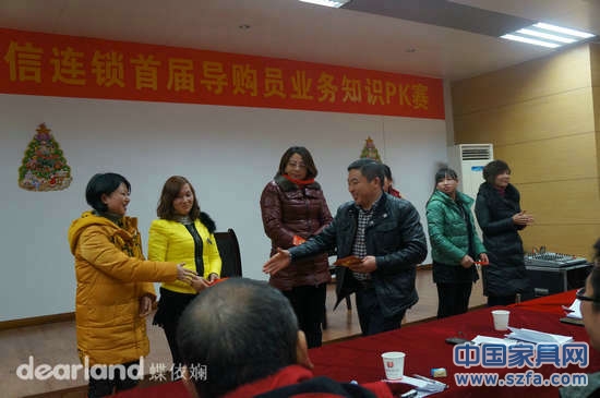 十大品牌誠信連鎖對此次業(yè)務(wù)知識擂臺賽相當(dāng)重視,會長開開木門張總、副會長蝶依斕家居布藝陳總等十大品牌掌門人出席擔(dān)任此次比賽的評委;紛紛對參賽選手進行了點評,提出了寶貴意見。為體現(xiàn)誠信連鎖各大品牌的實力,讓營銷人員相互之間有更多學(xué)習(xí)交流的機會,讓更多的營銷人員學(xué)習(xí)實戰(zhàn)經(jīng)驗,相互之間找到差距,起到相互激勵的效果;參與此次顛峰對決擂臺賽的選手均為誠信連鎖機構(gòu)十大品牌經(jīng)過多重考核、精心挑選的營銷高手;蝶依斕家居布藝行銷部周紅代表蝶依斕家居布藝參加了此次大賽。