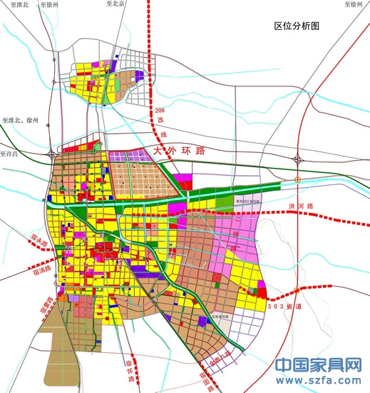 中國(guó)宿州·深圳家居產(chǎn)業(yè)園規(guī)劃占地15平方公里,分東西兩個(gè)部分組成,其中東邊為工業(yè)制造、物流倉(cāng)儲(chǔ),總用地約14平方公里,北至泗許高速,南至硭碭路(規(guī)劃),東至206改線(xiàn)國(guó)道,西至匯源大道;西邊為研發(fā)中心、商貿(mào)市場(chǎng)部分(商貿(mào)區(qū)),總用地面積約1平方公里,北至物流大道(規(guī)劃),南至泗許高速公路,西至拂曉大道,東至匯源大道。