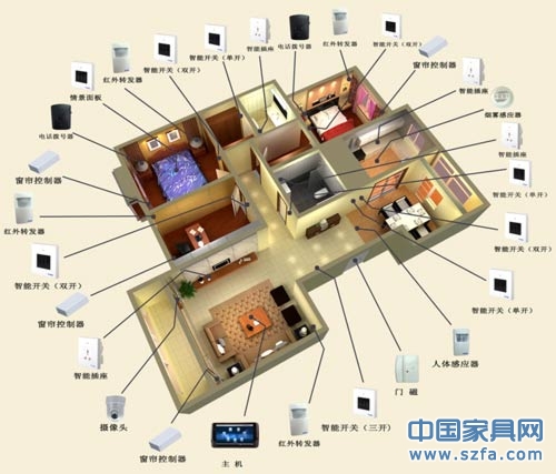 ZigBee技術(shù)應(yīng)用于家庭之后,其信號覆蓋整個屋子,用戶只需更換傳統(tǒng)的開關(guān),就可輕松實(shí)現(xiàn)對燈光、窗簾等電器的智能控制。此外,由于系統(tǒng)的容量大,用戶升級改造十分方便。