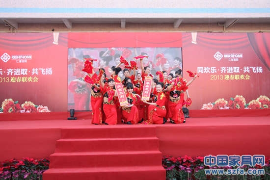騰龍呈祥辭舊歲,金蛇獻瑞迎新春,伴隨著喜氣洋洋的新春氣息,2013年1月30日,以“同歡樂、齊進取、共飛揚”為主題的迪諾雅家具2013年迎春聯(lián)歡會在歡歌笑語中拉開了序幕,來自迪諾雅家具各工作崗位的員工及員工家屬、供應(yīng)商代表及行業(yè)媒體朋友兩千多人歡聚于仁豪工業(yè)園,賓客云集,滿堂歡慶,喜迎新年。由迪諾雅各部門員工精心策劃、排練演出的歌唱、小品、舞蹈、魔術(shù)等精彩節(jié)目為在座的嘉賓和同事們奉獻了一場精彩的迎春聯(lián)歡會。