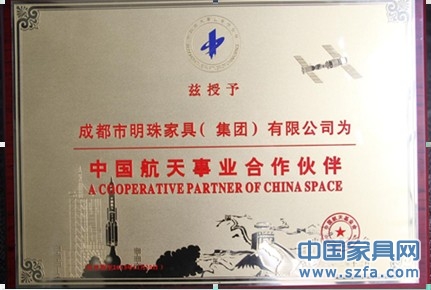 2013年1月17日,掌上明珠家具“中國航天事業(yè)合作伙伴”簽約授牌儀將在成都?xì)g樂谷大劇院隆重舉行,原載人航天工程副總指揮、中國人民解放軍總裝備部總裝備部副部長、中國航天基金會(huì)理事長張建啟、中國家具協(xié)會(huì)理事長朱長嶺、原中國酒泉衛(wèi)星發(fā)射中心副司令員、中國航天基金會(huì)秘書長張玉江、明珠集團(tuán)總裁王建斌等嘉賓光臨現(xiàn)場,共同見證了中國家具界這一具有里程碑意義的時(shí)刻。至此“中國航天事業(yè)合作伙伴”爭奪戰(zhàn)塵埃落定,而家具業(yè)的“航天時(shí)代”大幕也隨之徐徐開啟。