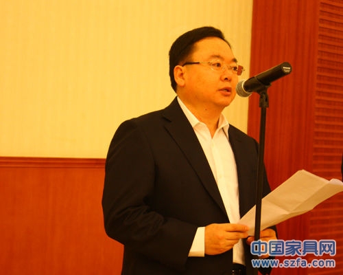 中國家具協(xié)會秘書長朱長嶺致辭,他表示,在經濟情況不好的大環(huán)境下,廣州國際家具博覽會吸引了眾多海內外知名品牌,展會為業(yè)內搭建了很好的交流平臺。