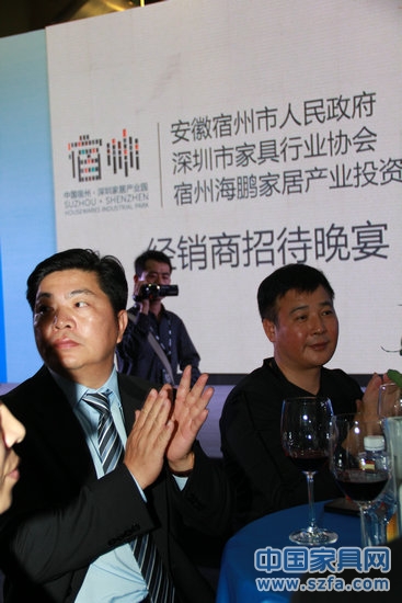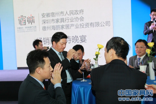 2013年3月19日晚,“有一種生活方式叫意大利”暨宿州·深圳家居產(chǎn)業(yè)園客戶見面會在深圳國際家具展5號館隆重舉行。宿州市人民政府副市長羅宏、中國宿州·深圳家居產(chǎn)業(yè)園總裁唐俊東、安徽省家具協(xié)會理事長趙卓華、徽商銀行宿州市分行行長蔡春、安徽萬家美居董事長萬平安、深圳市家具行業(yè)協(xié)會會長、深圳左右家私有限公司董事長黃華坤、深圳市家具行業(yè)協(xié)會執(zhí)行會長、深圳仁豪家具有限公司董事長尤國忠、深圳市家具行業(yè)協(xié)會執(zhí)行會長侯克鵬、香港興利集團(tuán)執(zhí)行董事黃偉業(yè)、深圳家具研究開發(fā)院院長許柏鳴、香港興利集團(tuán)董事長宋啟慶先生以及宿州政府代表團(tuán)和安徽各地經(jīng)銷商等共同參加了此次見面會。