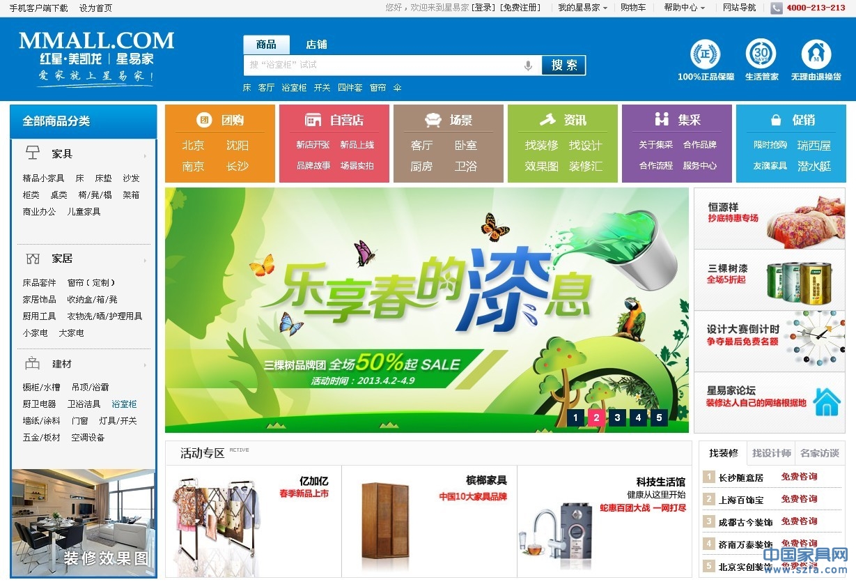 “相對實體店更便宜的價格是網(wǎng)上商城的主要優(yōu)勢?;顒悠陂g,所有參與品牌商家絕對保證全城最低價,通過星易家報名網(wǎng)絡(luò)團購的消費者可以直接獲得更多優(yōu)惠,例如4月6日網(wǎng)絡(luò)建材團購大會,原價10000多元的衛(wèi)浴四件套只需3500元。”星易家負責人介紹。