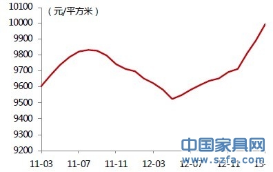 國內(nèi)房地產(chǎn)量價(jià)齊升。自去年下半年以來,在剛需購房帶動下,房市回暖跡象明顯,呈現(xiàn)量價(jià)齊升現(xiàn)象。截至今年2月,商品房銷售面積累計(jì)1.05億平方米,同比增速49.5%。而住宅成交價(jià)格在去年6月開始連續(xù)十個(gè)月上漲,今年3月全國100個(gè)城市住宅平均價(jià)格為9998元/平方米,環(huán)比上漲1.06%。