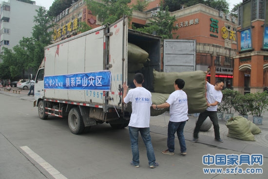2013年4月23日下午,深圳夢之美家居總經(jīng)理張文魁、副總楊剛一行五人帶著趕制出的首批價值五萬余元的一千余件多功能抱枕和兩百多件嶄新的衣服送往成都神仙樹雅安天全縣定點物資捐贈點,由捐贈點直接發(fā)往天全縣重災(zāi)區(qū)。在捐贈點,公司領(lǐng)導(dǎo)與捐贈點負(fù)責(zé)人進行了交流,對捐贈物資進行了登記并了解了災(zāi)區(qū)的情況,并就下一步的捐贈進行了溝通和部署,張總決定,親自帶隊隨捐贈點車隊進入災(zāi)區(qū)協(xié)助賑災(zāi)工作。
