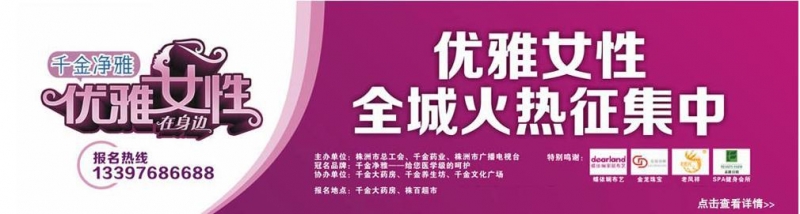 為倡導(dǎo)優(yōu)雅女性新風(fēng)尚,彰顯株洲優(yōu)雅女性風(fēng)范,為株洲創(chuàng)建全國(guó)文明城市貢獻(xiàn)力量,由株洲市總工會(huì)、千金藥業(yè)、株洲市廣播電視臺(tái)主辦,蝶依斕全程贊助的株洲優(yōu)雅女性評(píng)選活動(dòng)啟動(dòng)。