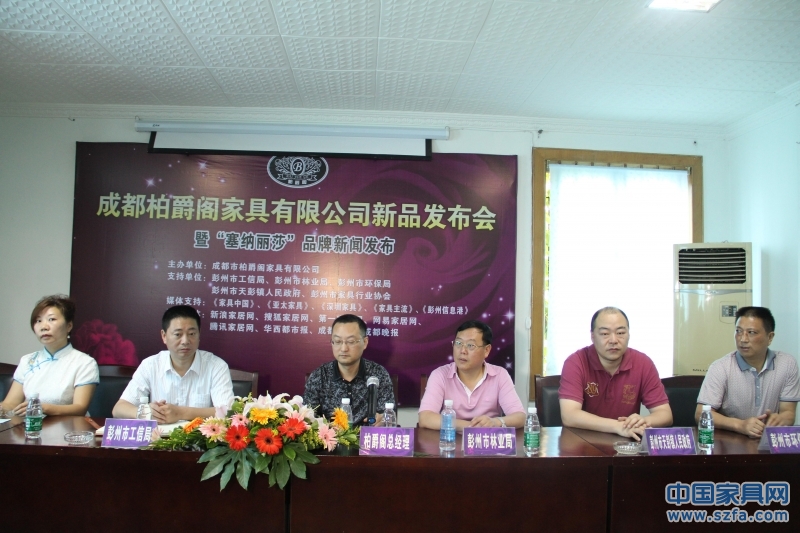 2013年5月22日,成都柏爵閣家具有限公司新品發(fā)布會(huì)暨塞納麗莎品牌新聞發(fā)布會(huì),在彭州工信局辦公室順利召開。彭州市政府部門領(lǐng)導(dǎo)、彭州市家具行業(yè)協(xié)會(huì)領(lǐng)導(dǎo)、成都柏爵閣家具有限公司總經(jīng)理?xiàng)疃ㄏ椋约皫资胰珖?guó)知名媒體共同分享了柏爵閣家具的發(fā)展歷程,并見證了“塞納麗莎”系列新產(chǎn)品的發(fā)布。