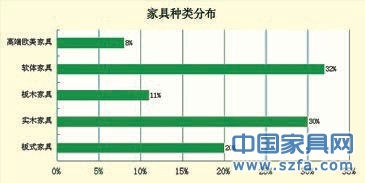 通過(guò)走訪浙江嘉興、湖州、杭州三地的9個(gè)賣場(chǎng),經(jīng)過(guò)數(shù)據(jù)分析得出:賣場(chǎng)家具種類占比中軟體和實(shí)木家具占據(jù)了大半壁江山,分別為32%和30%。軟體家具由于其色彩以及舒適度上更受年輕一代消費(fèi)者的喜歡,而實(shí)木家具,隨著近幾年實(shí)木風(fēng)的興起,實(shí)木家具品牌越來(lái)越多,眾多非實(shí)木家具企業(yè)也紛紛涉水實(shí)木家具。板式與板木分別為20%、11%;高端歐美家具8%。就分布而言,實(shí)木家具以及高端歐美家具則大都位于賣場(chǎng)的高層。