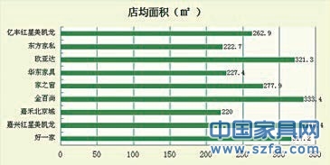 從各賣場(chǎng)的店面面積來(lái)看,平均面積在200 ,其中嘉興紅星美凱龍與湖州的金百尚以及杭州的歐亞達(dá)平均面積均超過(guò)300 。調(diào)研顯示,經(jīng)銷商的店面面積都在150以上。