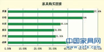 在消費(fèi)者購(gòu)買家具首要考慮因素中,質(zhì)量獨(dú)占鰲頭,達(dá)到57.45%的比例;其次是價(jià)格,占比50%。由此可以看出,價(jià)廉物美一直是中國(guó)老百姓孜孜不倦的追求。