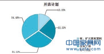 對(duì)2013年的發(fā)展規(guī)劃,34.44%的經(jīng)銷商有擴(kuò)大現(xiàn)有面積或者增開(kāi)新店的計(jì)劃,其中增開(kāi)新店為22.22%,擴(kuò)大現(xiàn)有面積有12.22%的比例。31.11%的人表示暫時(shí)沒(méi)有計(jì)劃,34.45%的人暫時(shí)觀望。