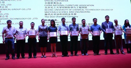 會議過程中,還進(jìn)行了“2013年優(yōu)秀水性木器涂料廠家和原材料企業(yè)”的頒獎典禮,展辰涂料集團(tuán)作為水性涂料研發(fā)的先驅(qū)者之一,有幸榮獲了“2013年優(yōu)秀水性木器涂料廠家”的光榮稱號,張玉潔總經(jīng)理代表我公司上臺領(lǐng)獎。在會議現(xiàn)場,展辰涂料集團(tuán)展示的水性木器涂料樣板及家具樣品,成為此次展會的一大亮點(diǎn),引來諸多業(yè)內(nèi)同仁的觀摩探討。