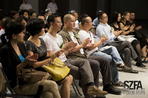 本次開幕式吸引了眾多來自設(shè)計界、藝術(shù)界和媒體界的朋友來到現(xiàn)場。在主辦方美國《室內(nèi)設(shè)計》中文版雜志代表、贊助商雅倫格和域圖的代表簡短演講之后,開幕式進(jìn)入精彩的論壇環(huán)節(jié),到場的9位創(chuàng)作成員代表對自己的作品作出了深刻的闡述。