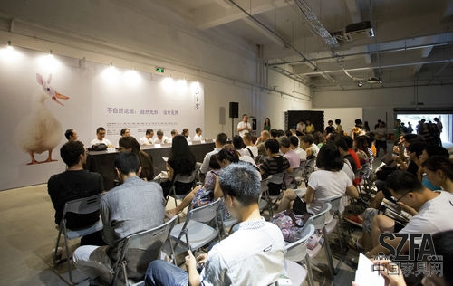 論壇引起了現(xiàn)場觀眾的熱烈反應(yīng),提問環(huán)節(jié)中,觀眾積極提問,與創(chuàng)作成員就“自然與不自然”的關(guān)系進(jìn)行深入的探討。本次展覽將持續(xù)到8月5日,14件作品也將在展覽中與觀眾達(dá)成更多的互動與交流。