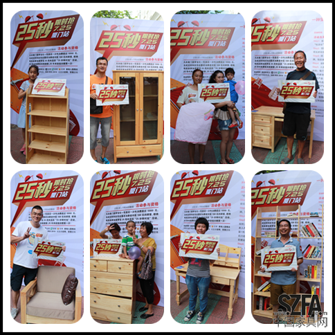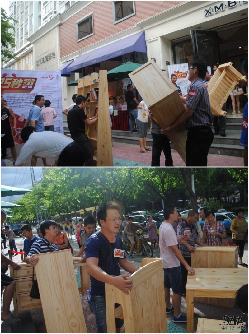 在活動(dòng)角逐中,家居柜、書(shū)桌等重量級(jí)的產(chǎn)品受到許多男士的親睞。肩扛式、環(huán)抱式……各種方式齊上陣?;顒?dòng)當(dāng)日共送出45件實(shí)木家具。其中一間玻璃窗松木儲(chǔ)物柜平時(shí)需要兩個(gè)工人才能搬動(dòng),來(lái)自廈門的魏先生卻在25秒內(nèi)將其搬出門店,獲得此件產(chǎn)品。參賽者們的爆發(fā)力可謂是讓人嘆為觀止。