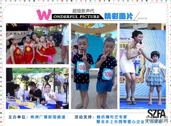 近日,由株洲廣播新聞頻道主辦,蝶依斕布藝專家,聚龍水上樂園,匯源100%純果汁等愛心企業(yè)大力支助的大型兒童歌唱秀“超級新聲代”第一場初賽正式開幕,150多位前來參加比賽的小朋友們在爸爸媽媽的陪同下早早的來到了位于荷塘區(qū)建工新桂廣場的比賽現(xiàn)場。同時主辦方還設立了“蝶依斕幸福寶貝秀”攝影展,8月底將評出攝影大獎。此次活動為有夢想、想唱歌的孩子們提供一個自我展示的絕佳舞臺,充分展現(xiàn)出株洲小朋友們的才藝和積極向上的精神風貌,為株洲創(chuàng)文添磚加瓦。