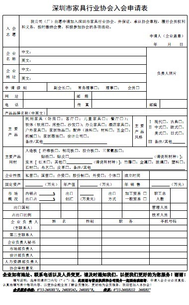 深圳市家具行業(yè)協(xié)會(huì)入會(huì)申請(qǐng)表