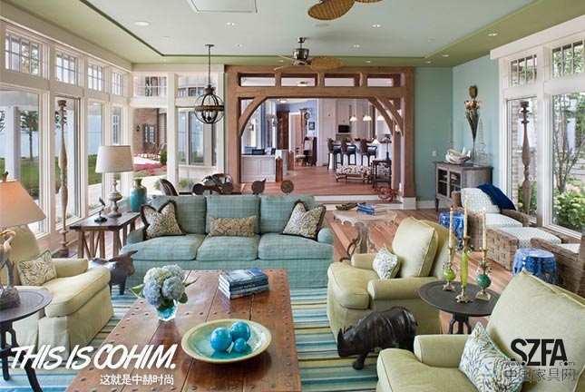 在一個溫暖的午后,當你打開窗戶,一股清涼的夏日微風輕輕擦過你的面頰……我們應該把夏日的氣息放入到我們的家居軟裝中,讓夏日色彩點亮自己的心靈和愉悅我們的心情。我們可以從大自然中甄選出很多元素:青青的小草、碧藍的海水、潔白的沙灘和所有在你腦海中閃現(xiàn)出的夏日海邊度假中所有的色彩,你可以把它們帶入你的家里。就像大自然可以改變自己的色彩,你的家也可以擁有這樣的能力。我們在客廳里加一個彩色艷麗的沙發(fā),同時添加一些點綴的靠背,就讓它變成了你房間中最引人入勝的地方。柔和的水粉色調(diào)是很多人最喜歡的顏色,它能夠讓人們想到美味的冰淇淋,它會使我們不自覺的放慢腳步,只想去感受這個夏天的美好。