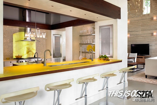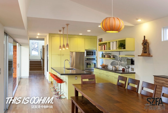 很多人希望自己的房間要充滿實用性,強調(diào)標準化的的室內(nèi)裝修細節(jié),這可能會扼殺了我們的想法,讓家里感覺死氣沉沉,毫無生氣。讓夏日色彩給那些意想不到的地方帶來一些驚喜吧,廚房里的櫥柜,電器,洗衣房,甚至是操作臺上都可以擺脫它們傳統(tǒng)的色彩。讓櫥柜從傳統(tǒng)咖色向淡黃綠色進行一個轉(zhuǎn)換,你將會發(fā)現(xiàn),夏日顏色讓你的室內(nèi)設(shè)計唱出了童年的歡樂感覺。