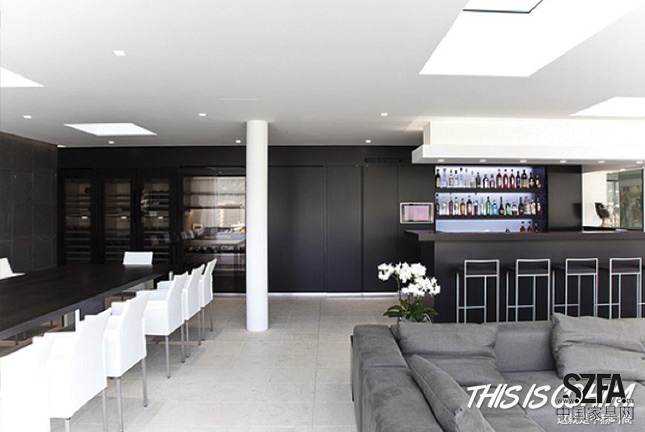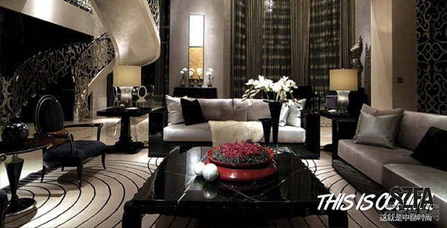 是對中國文化理解上的當代再設(shè)計,在門、墻、色彩等重要建筑要素上體現(xiàn)傳統(tǒng)的中式風采,但是也將鋼、玻璃、大開窗等現(xiàn)代材質(zhì)大加發(fā)揮。重視文化意蘊;配飾用文人字畫、古玩、雕刻、盆景等藝術(shù)品加以點綴。