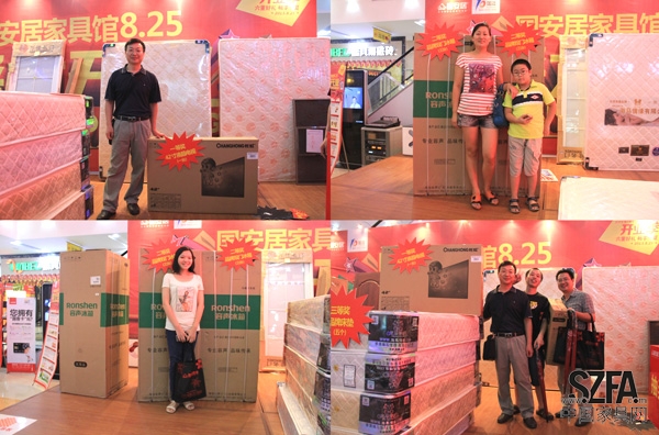 而惠陽國安居家具館開業(yè)現(xiàn)場活動,也吸引了近千名業(yè)主們的參與,其中大部分為老客戶為主,一位來至?;莼▓@的郭先生開心的跟我們筆者說,他7月28日就參與國安居的活動,當日不僅中了大獎,還買了很多便宜的東西,這一次國安居工作人員電話通知我說,他們家具館開業(yè),我毫不猶豫就來了,今天雖然沒有中到大獎,但是基本上買齊了家里所需的家具,不僅實惠,而且節(jié)約了很多時間,現(xiàn)在就等著住進新家了。