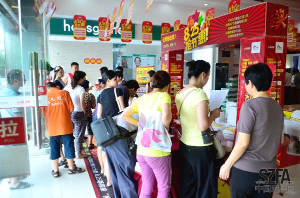 民治國安居此次直銷會活動是2013年力度最大一次活動,也是第一次,所以在活動推出前,就有許多業(yè)主紛紛來電咨詢了解活動情況,報名帖上一周內(nèi)報名人數(shù)就已經(jīng)突破300戶,活動通行卡就出售了近500張,大部分業(yè)主來至龍華片區(qū),甚至有從寶安和南山等區(qū)的業(yè)主們?;顒赢斕?,實際簽到人數(shù)達到了500余人,加上自然上門客戶,最后估計超過1000余人,從早上9:30開始簽到和買單的就開始排隊,現(xiàn)在氛圍十分火爆。