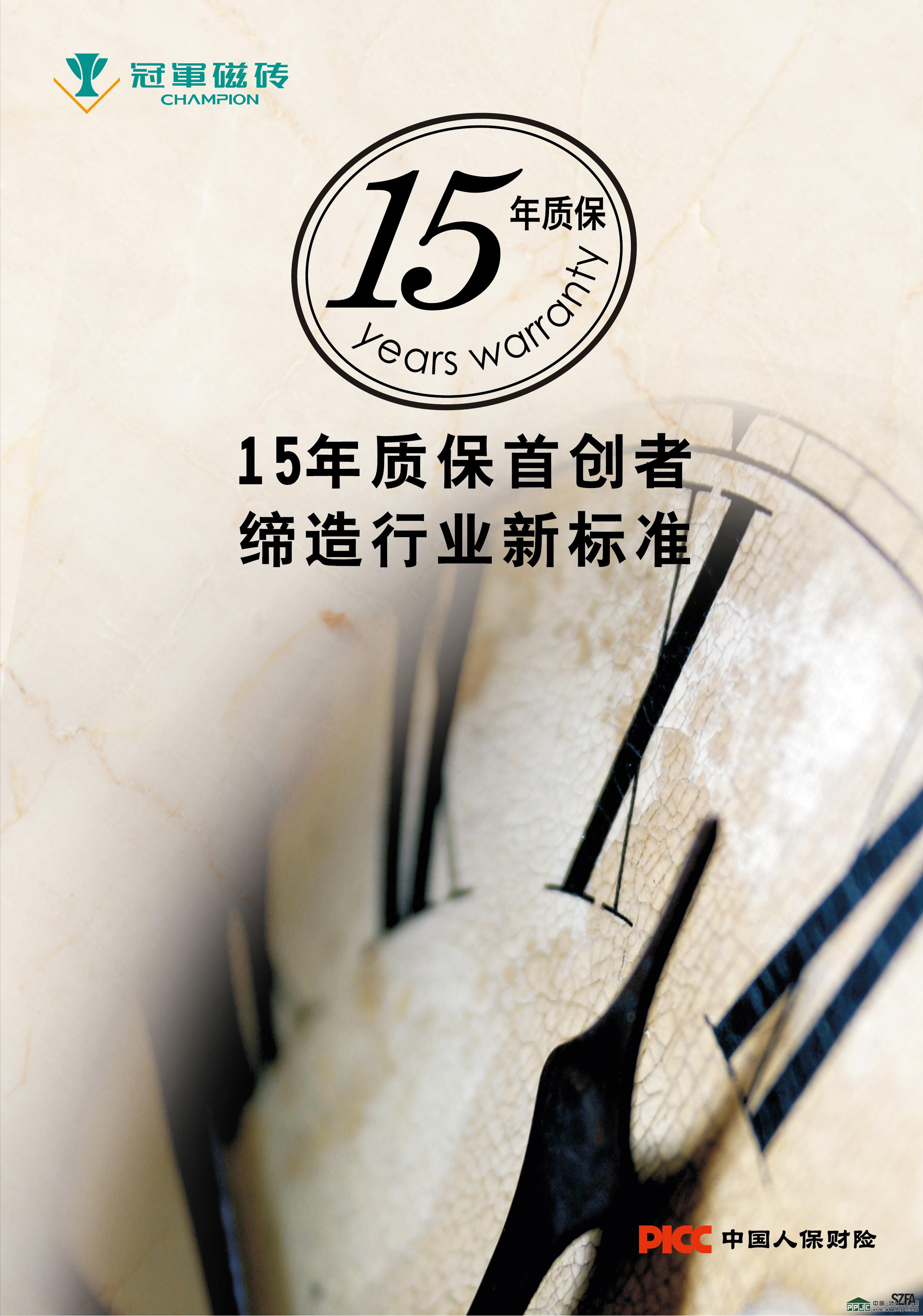 此外,冠軍更率先鄭重承諾:凡購買指定產(chǎn)品于指定場所鋪貼的瓷磚,均享瓷磚15年質(zhì)保服務(wù),從消費者角度設(shè)身處地著想,維護(hù)安心使用的權(quán)利。承諾15年瓷磚無變形、無龜裂、無褪色,如在質(zhì)保期限內(nèi)出現(xiàn)問題,冠軍將做出相應(yīng)的補(bǔ)償。