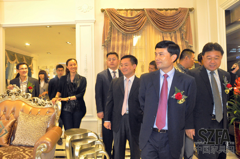配圖:東莞市委宣傳部長潘新潮先生及相關(guān)領(lǐng)導(dǎo)在興業(yè)家居參觀視察