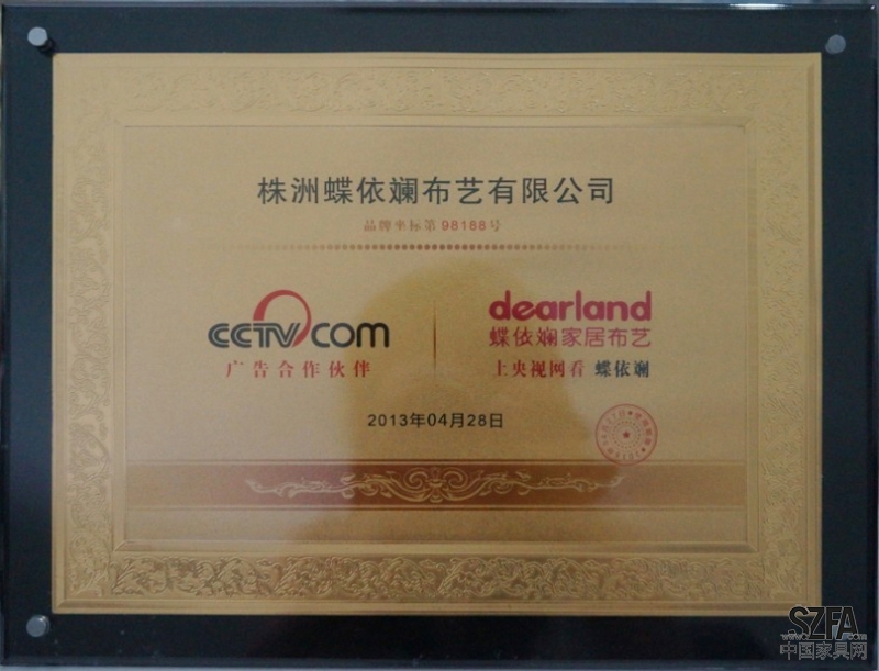 近日,從央視網(wǎng)傳來(lái)喜訊,蝶依斕經(jīng)過(guò)央視網(wǎng)企業(yè)頻道的層層審核和篩選,最終被授權(quán)為CCTV.COM央視網(wǎng)廣告合作伙伴,合作期為三年。在合作期內(nèi),央視網(wǎng)授權(quán)蝶依斕使用央視網(wǎng)·企業(yè)頻道相關(guān)標(biāo)識(shí),并成為國(guó)內(nèi)布藝行業(yè)首家可將“CCTV”標(biāo)識(shí)與“蝶依斕”LOGO并列使用的企業(yè),并可用于企業(yè)名片、網(wǎng)站、產(chǎn)品宣傳冊(cè)等數(shù)十個(gè)地方,同時(shí)在央視網(wǎng)官方網(wǎng)站,搜索蝶依斕通欄廣告位展示三年。借助央視網(wǎng)品牌影響力,蝶依斕品牌提升再上新臺(tái)階。