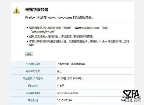傳家具電商牛窩網(wǎng)倒閉 網(wǎng)頁已經(jīng)無法打開