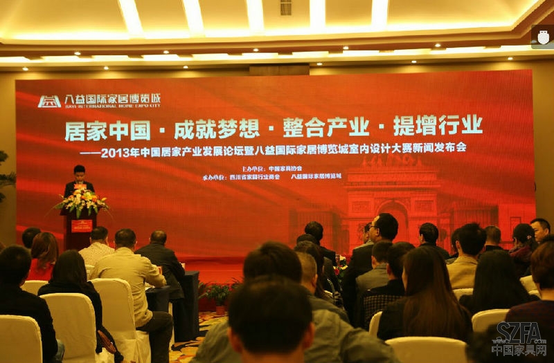 2013年10月29日14:00,由中國(guó)家具協(xié)會(huì)主辦,四川省家具行業(yè)商會(huì)、八益國(guó)際家居博覽城承辦的2013中國(guó)居家產(chǎn)業(yè)發(fā)展論壇暨八益國(guó)際家居博覽城室內(nèi)設(shè)計(jì)大賽新聞發(fā)布會(huì)在成都世紀(jì)城天堂洲際大飯店5樓錦江廳隆重舉行,家居行業(yè)劃時(shí)代的巨幕由此開(kāi)啟。
