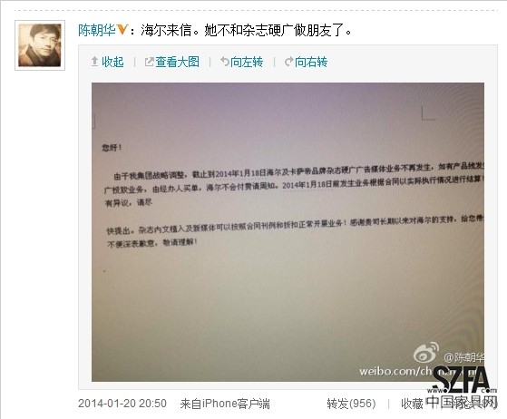 “由于我集團戰(zhàn)略調整,截止到2014年1月18日海爾及卡薩帝品牌雜志硬廣廣告媒體業(yè)務不再發(fā)生,如有產(chǎn)品線發(fā)生硬廣投放業(yè)務,由經(jīng)辦人買單,海爾不會付費請周知。”海爾在郵件中如是說。