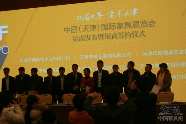 2014年1月18日14時(shí),“比肩世界 愛木天津”——中國(天津)國際家具展覽會(huì)招商發(fā)布會(huì)暨展商簽約儀式在天津梅江會(huì)展中心隆重舉行。會(huì)議正式宣告由天津市家具行業(yè)協(xié)會(huì)主辦的首屆中國(天津)國際家具展覽會(huì)將于2014年5月29日至6月1日在天津梅江會(huì)展中心盛大舉行。行業(yè)內(nèi)及大眾數(shù)十家媒體,共同見證本次發(fā)布會(huì)暨簽約儀式的圓滿成功。本次活動(dòng)更為數(shù)月后開幕的中國(天津)國際家具展覽會(huì)做好強(qiáng)力的預(yù)熱工作。