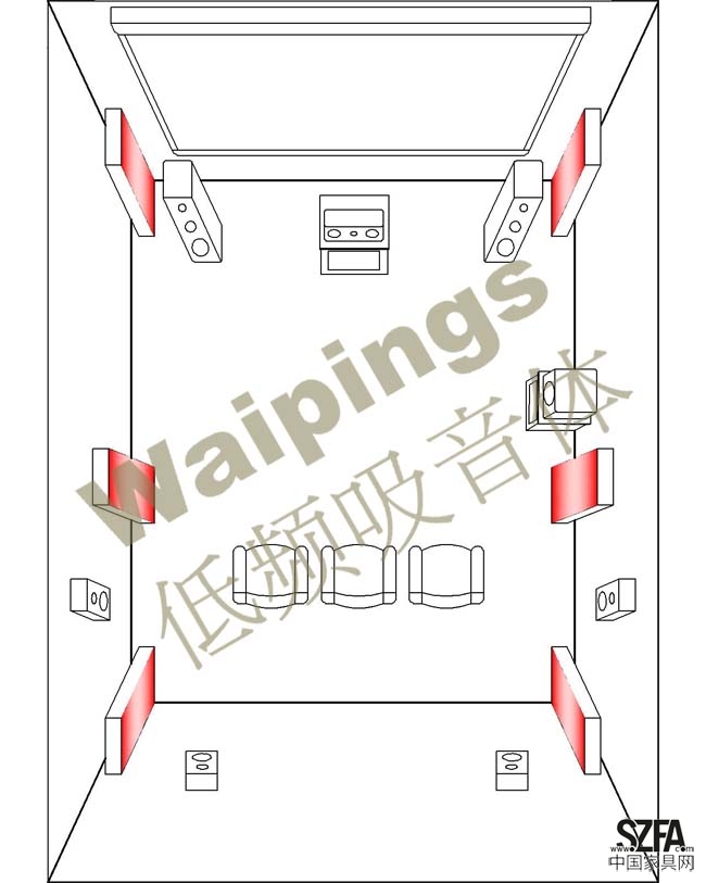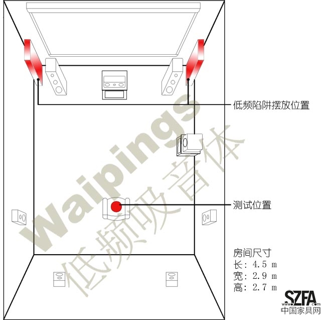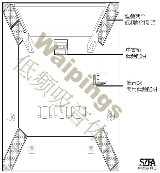 低頻駐波通常會在四個墻角聚焦最嚴(yán)重,低頻陷阱也就是放在墻角效果最好。
