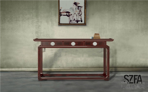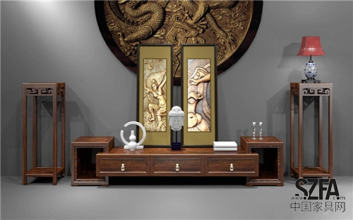 此廳柜以現(xiàn)代家居功能需要結(jié)合傳統(tǒng)家具的裝飾元素予以規(guī)劃設(shè)計,再結(jié)合浮雕、鏤刻及透空開光等裝飾手法,在整體端正敦厚的造型風(fēng)格中點(diǎn)綴以精致與空靈,意在呈現(xiàn)寓巧于拙,寓美于樸之韻味。