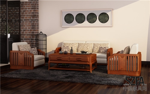 沙發(fā)通體素潔,不著繁飾,而各處用線,則巧妙異常,縱貫上下,變多樣看面。茶幾上下兩層實用幾案,中間單設大屜,側(cè)邊排列為婁,柔婉文雅。此幾集古與中之精華所在,玲瓏實用、端莊大方。