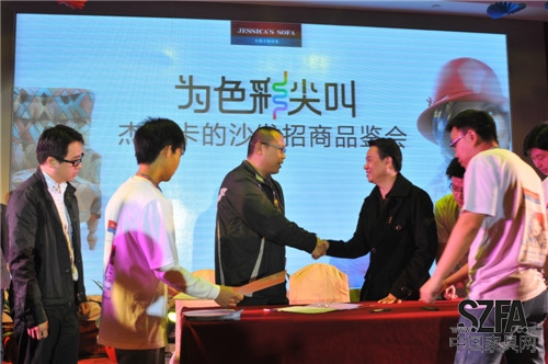 會議期間,來自全國各地的經(jīng)銷商紛搶代理權(quán)。現(xiàn)場數(shù)十家VIP客戶拿到了“杰西卡的沙發(fā)”的首批區(qū)域代理權(quán)。