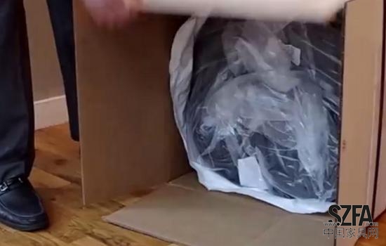 壓縮后的床墊被塞進(jìn)盒子。