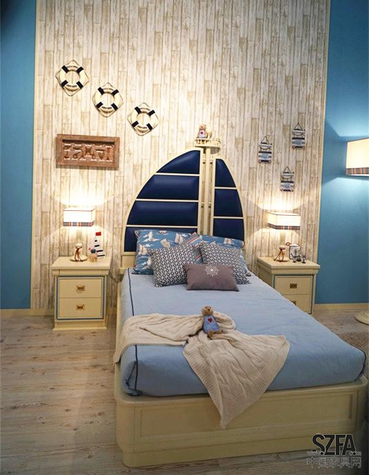 藍色是最為純凈的色彩,天空、大海、浩瀚的宇宙都給人以藍色印象。在兒童家具領域,藍色一般專屬于男孩子。他們時而安靜,時而像水手般富有冒險精神。