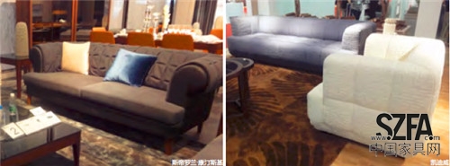 布藝沙發(fā)的面料種類相對(duì)固定,市場(chǎng)上最常見的多為各類棉麻布、絨布等。本屆展會(huì),凱迪威和斯帝羅蘭則同時(shí)在布藝的肌理上做了文章,其夸大的凹凸肌理可以給人不一樣的視覺和觸覺體驗(yàn)。