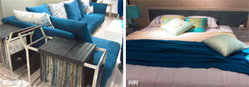 本屆展會(huì),無論是實(shí)木還是板式、中式風(fēng)格還是現(xiàn)代風(fēng)格的家具產(chǎn)品都傾向于使用藍(lán)色的配飾(比如床品、靠包、燈飾等)甚至有些沙發(fā)通體為藍(lán)色,給整個(gè)家居環(huán)境注入了不少青春活力。