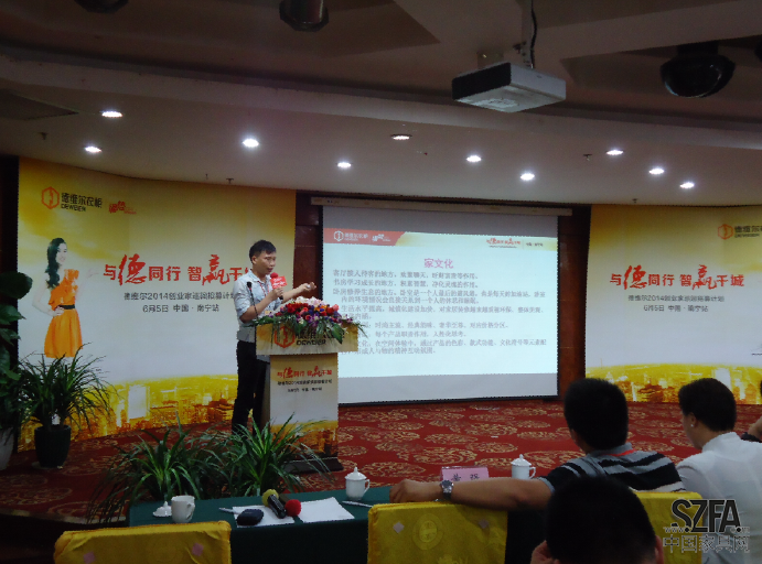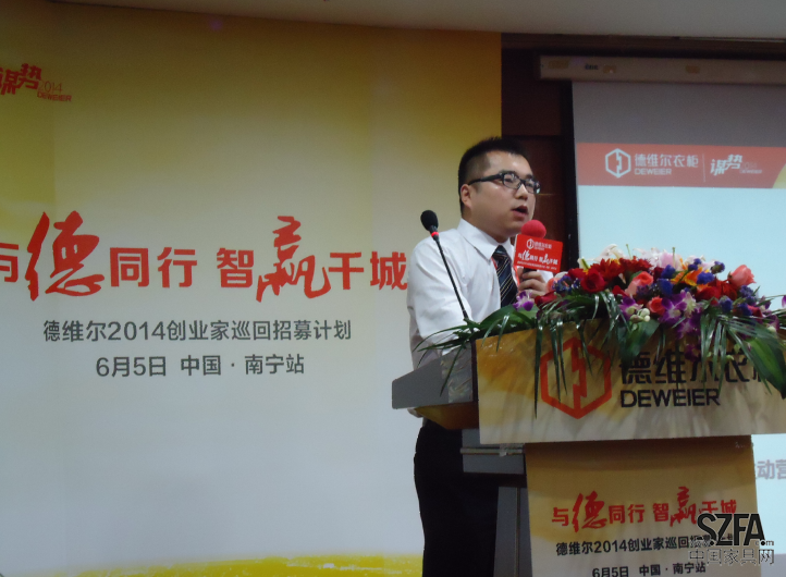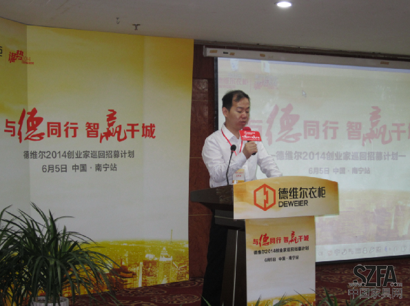 2014年6月5日,德維爾“與德同行,智贏千城”創(chuàng)業(yè)家招募計劃首站在廣西第一大城市、北部灣經(jīng)濟(jì)區(qū)核心城市、華南地區(qū)特大城市、中國東盟博覽會永久舉辦地——南寧圓滿召開。這是繼德維爾衣柜在2014年與貴仁相助營銷顧問公司達(dá)成戰(zhàn)略合作、提出“謀勢2014,謀動2015,謀贏2016”三年規(guī)劃、推出行業(yè)至高環(huán)保木態(tài)板、攜手國際巨星黃圣依之后的又一重大舉措。德維爾營銷副總翁振暉先生,德維爾戰(zhàn)略合作伙伴、家居建材行業(yè)頂尖顧問公司——廣州貴仁相助營銷顧問公司創(chuàng)始人韓鋒老師,以及區(qū)域營銷精英、廣西大部分地區(qū)意向合作伙伴匯聚一堂,共計50余人參加會議,現(xiàn)場簽約加盟10家,斬獲豐碩成果,宣告德維爾渠道深耕戰(zhàn)略不斷下沉,以品牌高溢價、加盟政策與優(yōu)惠活動為杠桿,扶持新興市場加盟商做大做強(qiáng),共享家居財富盛宴。
