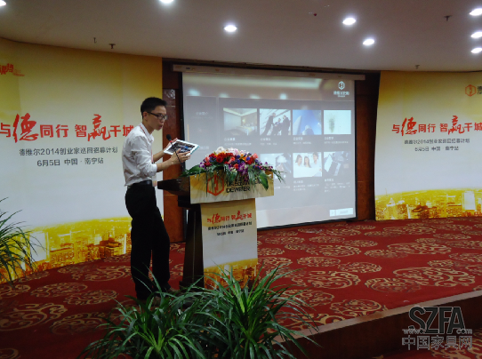 隨后,德維爾衣柜研發(fā)總監(jiān)鄭維雍先生就關(guān)于德維爾產(chǎn)品的理念和產(chǎn)品的定位以及研發(fā)方向進(jìn)行了詳細(xì)的講解;營銷顧問兼主動營銷部負(fù)責(zé)人張令凱老師對德維爾32530營銷模式進(jìn)行具體的講解,幫助經(jīng)銷商贏在開端,確保開一家店,活一家店,火一座城。精彩的演講博得了意向加盟商們一次次熱烈的掌聲和熱情的響應(yīng)。