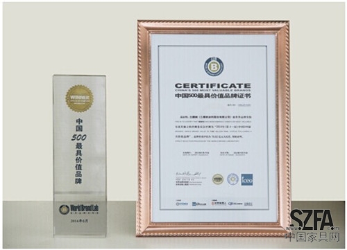 2014年6月25日,世界品牌實(shí)驗(yàn)室(WorldBrandLab)在北京發(fā)布了2014年(第十一屆)《中國(guó)500最具價(jià)值品牌》排行榜,三棵樹第八次榮登“中國(guó)500最具價(jià)值品牌排行榜”,品牌價(jià)值78.62億元。