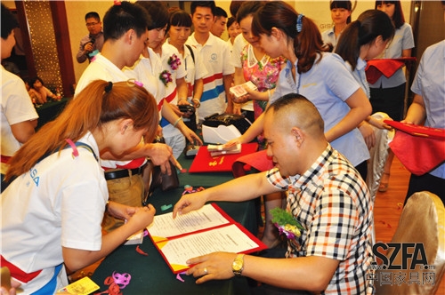 經(jīng)銷商對(duì)歐適德品牌產(chǎn)生濃厚興趣積極踴躍排隊(duì)現(xiàn)場(chǎng)交納加盟訂金并簽約