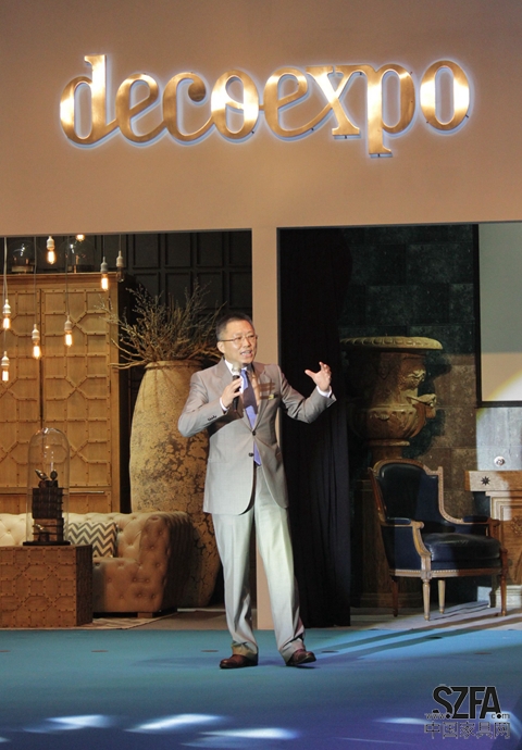 上午十點位于深圳會展中心一號館的深圳市時尚創(chuàng)意產業(yè)聯盟區(qū)座無虛席,深圳市經濟貿易與信息化委員會郭立民主任、高林主任,深圳時尚創(chuàng)意產業(yè)聯盟侯克鵬主席,深圳市家具行業(yè)協會黃華坤會長及服裝、黃金珠寶首飾、鐘表、皮革、工業(yè)設計行、內衣、眼鏡行業(yè)協會代表等嘉賓出席了本次會議。深圳時尚創(chuàng)意產業(yè)聯盟侯克鵬主席,深圳市家具行業(yè)協會黃華坤會長和深圳市經濟貿易與信息化委員會高林主任代表嘉賓上臺致辭,恭?;顒訄A滿成功,并為深圳市時尚創(chuàng)意產業(yè)聯盟送上祝福。